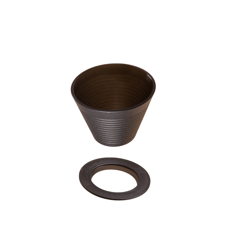 Son angle de paroi de 40° optimise l’écoulement de l’eau pour une extraction homogène, tandis que la large ouverture inférieure accélère le débit et favorise une tasse claire et expressive. Le fond incurvé limite le channeling et assure un équilibre parfait, sans amertume.